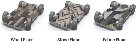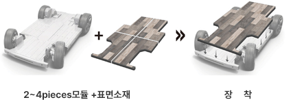 모빌리티 바닥재는 모듈구조기반으로 다양한 표면소재를 장착하여 고객사대리점 및 Aftermarket에서